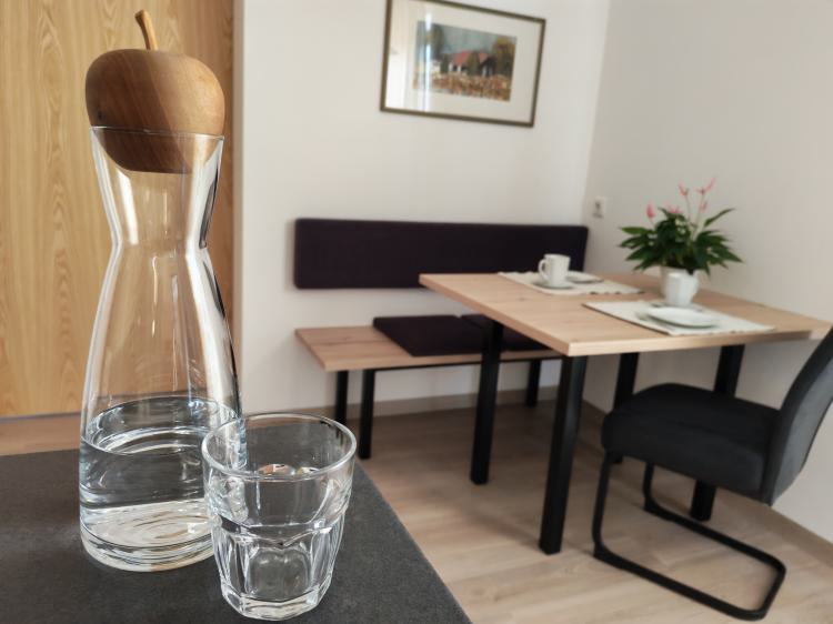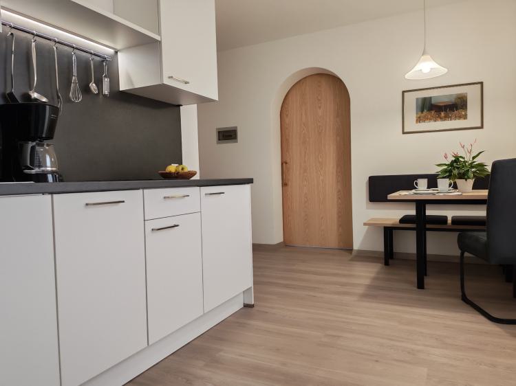 L’appartamento Jonathan (48 m2), ideale per il soggiorno di 2 - 3 persone, si trova a pianterreno. Dispone di una cucina abitabile completamente dotata con comodo angolo pranzo e sofà, stanza da bagno con doccia e WC, una stanza da letto spaziosa con pregiato pavimento in legno e mobili in legno massiccio nonché un balcone ad ovest con incantevole vista sulla valle, dove il sole splende ancora a lungo, la sera.